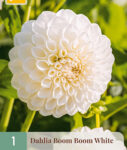 Deze Dahlia bloeit met grote witte bolvormige bloemen in de periode van juli tot oktober. Deze bloemen staan bij voorkeur in de volle zon en zijn ook geschikt als snijbloem. Dahlia’s zijn vorstgevoelig. Bewaar ze daarom na de bloei op een vorstvrije plaats.