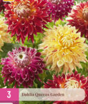 Deze Dahlia mix bevat bloemen die bloeien in de kleuren rood, oranje, geel, roze in de periode van juli tot oktober. Deze bloemen staan bij voorkeur in de volle zon en zijn ook geschikt als snijbloem. Dahlia’s zijn vorstgevoelig. Bewaar ze daarom na de bloei op een vorstvrije plaats.