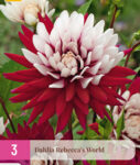 Deze Dahlia bloeit met prachtige wit/rode bloemen in de periode van juli tot oktober. Deze bloemen staan bij voorkeur in de volle zon en zijn ook geschikt als snijbloem. Dahlia’s zijn vorstgevoelig. Bewaar ze daarom na de bloei op een vorstvrije plaats.