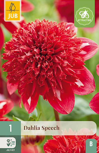 Deze Dahlia bloeit met rode bloemen in de periode van juli tot oktober. Deze bloemen staan bij voorkeur in de volle zon en zijn ook geschikt als snijbloem. Dahlia’s zijn vorstgevoelig. Bewaar ze daarom na de bloei op een vorstvrije plaats.