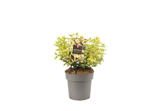 Deze Kardinaalsmuts heeft een bont blad van groen/gele blaadjes, welke in de winter vaak naar rood verkleuren. Euonymus fortunei Emerald ’n Gold wordt ca. 50cm hoog en kan zowel in de zon, halfschaduw of schaduw staan.