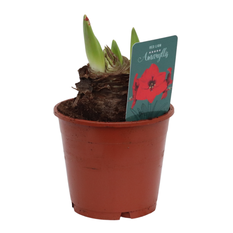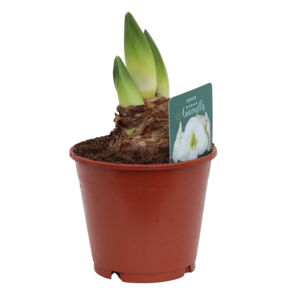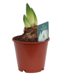 Deze Amaryllis in pot is verkrijgbaar in de bloeikleur rood of wit.