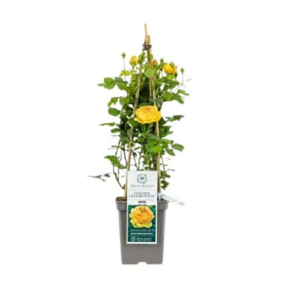 De Engelse Roos Golden Celebration bloeit met prachtige, gevulde geel/oranje bloemen die ook nog eens heerlijk geuren. Het is een doorbloeiende roos die bloeit vanaf juni tot in oktober. Rosa Golden Celebration staat graag in de zon of halfschaduw. De Engelse roos staat ook bekend als David Austin roos.