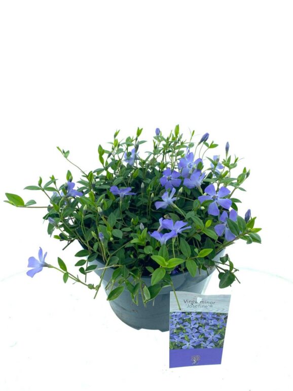 Kleine maagdenpalm is een groenblijvende bodembedekkende plant. De Vinca minor ‘Josefine’ bloeit met violetblauwe bloemen en heeft de voorkeur voor een plaats in de halfschaduw maar doet het ook goed op een andere standplaats.