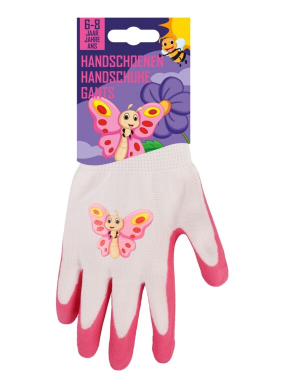 Met deze vrolijke kinderwerkhandschoenen worden kinderen enthousiast om mee te helpen in de tuin. De handschoenen geven een goede bescherming tegen oppervlakkige wondjes en houden de werkzaamheden hygiënisch.