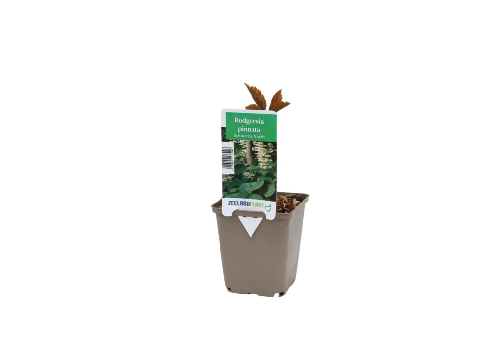 Deze Schout bij nacht bloeit van mei tot juli met roomwitte tot roze bloempluimen. Rodgersia pinnata houdt van een plekje in de halfschaduw of schaduw.